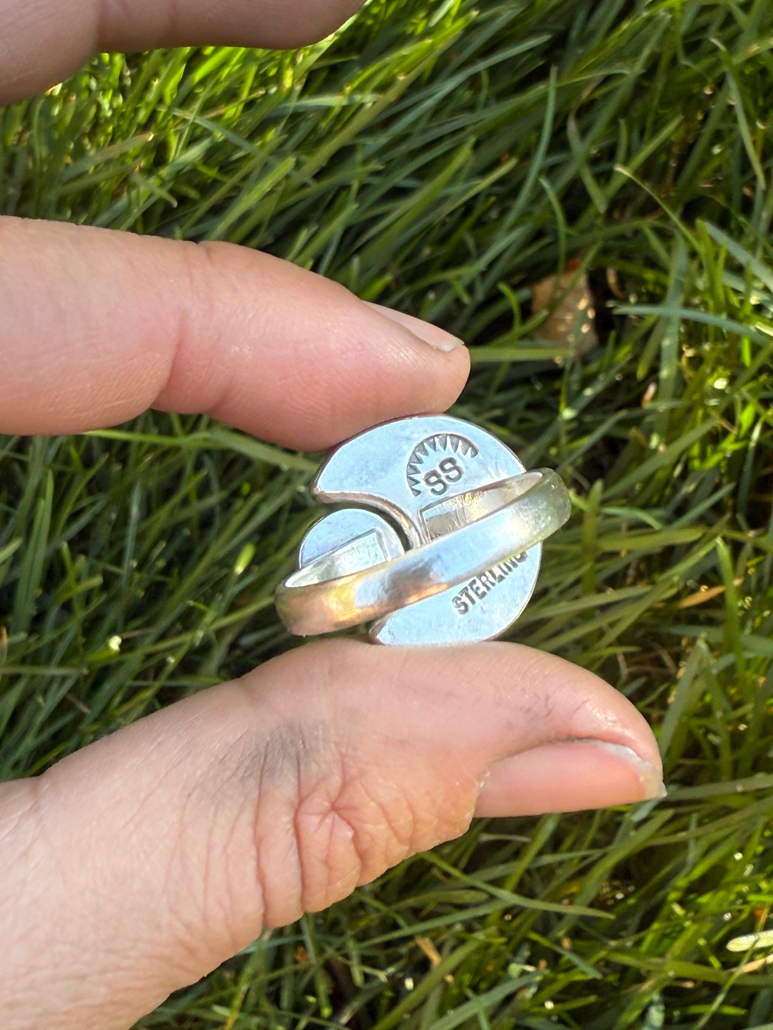 ‼️NOTE: The bottom tip of this moon cracked and broke during the setting process. The moon is secure, but I had to repair the corner. The damage is not super visible unless you're looking for it and I debated pulling this ring from the collection, but decided to offer it at a discounted price to see if anyone would like to give this slightly imperfect gem a home.‼️