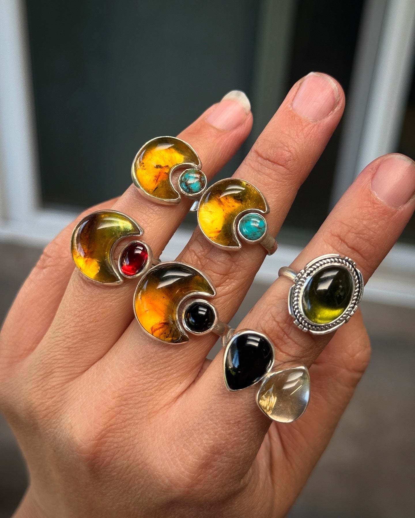 This is a ring that I had made to be open and slightly adjustable, but the two sides fused together during soldering making it a solid ring, and subsequently a size 8.25! I just didn't have the heart to saw them apart if they wanted to be together that much. 😉
