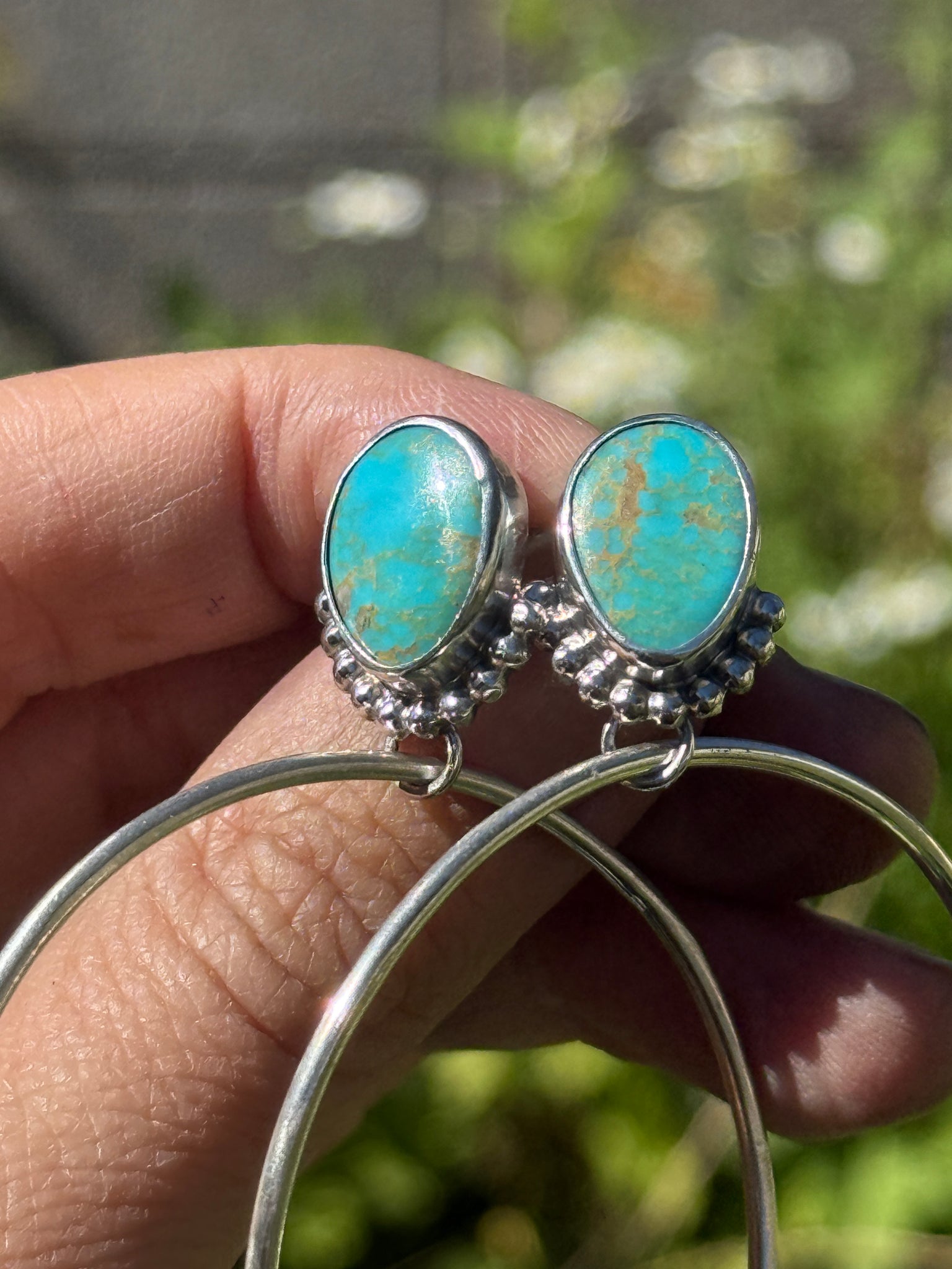 Handmade by me, Stephanie Stamp, under the sunny skies of New Mexico. Turquoise is considered a relatively soft and porous stone, and as with all silver based jewelry, this gem should be taken off when showering, applying lotion, etc. to avoid discoloration of the stone and to keep this piece in beautiful condition for years to come!